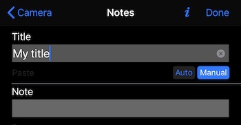 Standardmäßig wird Datum auch für den Fototitel verwendet, der in der unteren Kommentarüberlagerung angezeigt wird. Wenn Sie noch etwas anderes für den Fototitel verwenden möchten, tippen Sie bitte auf einen “Notizen” -Button: