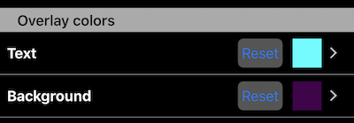 Farboptionen für Overlay-Texte und Hintergrund