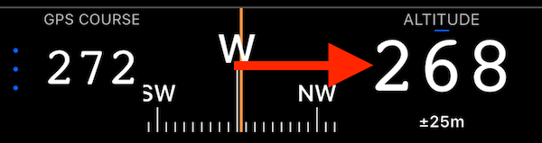 Die vertikale GPS-Genauigkeit wird immer unter dem Höhenwert angezeigt.