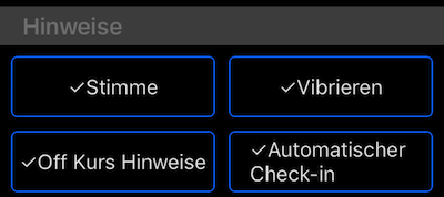 Off Kurshinweise. Wenn die Stimmanrufe eingeschaltet sind, dann wann immer du anfängst, dich dem Ziel zu nähern, aber einmal in halber Minute, bekommst du einen Tipp wie “Ziel” Waypoint 1 ‘ist XYZ Meilen entfernt, 30 Grad nach links. " Auf diese Weise wissen Sie, dass Ihr Kurs falsch sein könnte und welche Kurskorrektur Sie nehmen sollten.