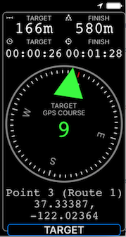 Off-Kurs-Hinweise - wenn auf, wird die App Sie Distanz zu der Ziel-und aktuelle Richtung zu ihm, wenn Ihr Kurs begann anders als die erwartete, plus / minus innerhalb Toleranz.