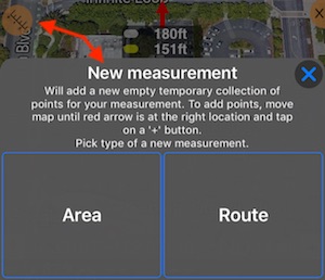 # 8 - Schaltfläche “Messung”. Bietet Optionen zum Erstellen eines neuen Bereichs oder einer neuen Route oder zum Speichern / Teilen / Verwerfen des gerade bearbeiteten Bereichs.