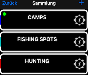 Tippen Sie auf MENU und dann auf WEGPUNKTE COLLECTIONS, um die Liste der vorhandenen Sammlungen zu öffnen: