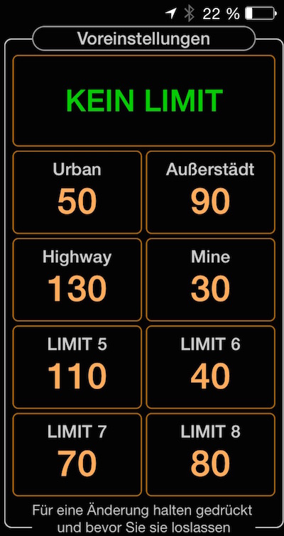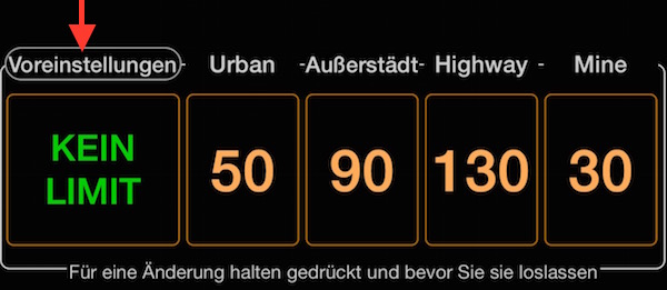 Als Speedometer begann, sich die Geschwindigkeitsgrenzen zu merken, wurde klar, dass dafür mehr als 4 Werte erforderlich waren. Halten Sie den Button „Voreinstellungen“: