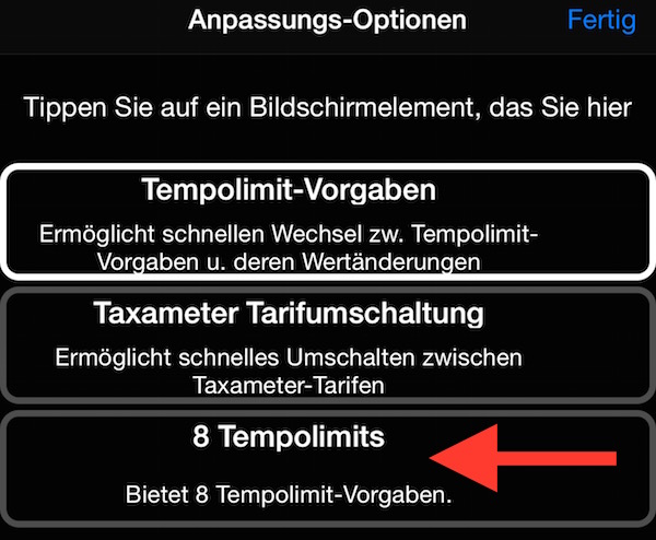 über den Vorgaben gedrückt bis die Anpassungsoptionen öffnen und wählen Sie die Option „8 Geschwindigkeitsgrenzen“:
