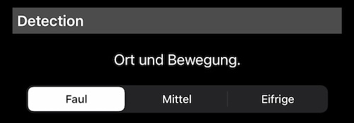 - Die standardmäßige Erkennungsrichtlinie ist “Faul”. Die App hört den Standort 15 Minuten lang ab, wenn sie von Apple/iPhone aufgrund einer signifikanten Änderung des Standorts oder der Aktivität geweckt wird. Wenn Sie während dieser Zeit nicht an Auto-/Fahraktivitäten beteiligt sind, gibt die App auf und kehrt in einen Tiefschlaf- oder sogar in einen beendeten Zustand zurück.