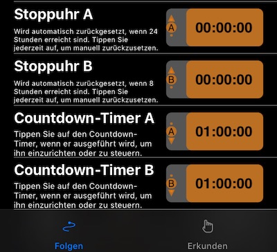 Zu den Symbolleistenoptionen gehören reine Schaltflächen, aber auch Instrumente wie Stoppuhr oder Countdown-Timer.