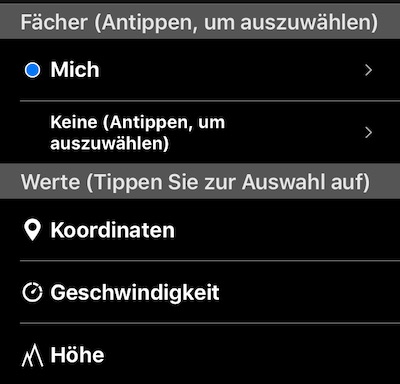 Die von Ihnen ausgewählten Optionen sind für den Geschwindigkeits- und Kartenbildschirm getrennt. Außerdem sind die Optionen für die Modi “Follow me” und “Browse / Edit” für die Karte getrennt. Wenn Sie dieselben Werkzeuge / Messwerte dort haben möchten, wählen Sie einfach dieselben aus. Dies ermöglicht es Ihnen, für jede Gelegenheit die am besten geeigneten Werkzeuge / Messwerte zu haben.