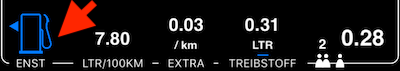 Wenn Sie hier die Tankkapazität eingeben, können Sie feststellen, wie hoch der Tankfüllstand ist, und die Reichweitenüberwachung einrichten. Außerdem gibt es einen Hinweis, wenn der Tank von der linken oder rechten Seite kommt: