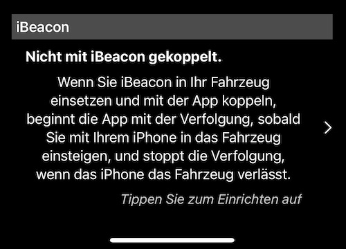 Wenn “Beacon + Location” für Sie albern klingt, wechseln Sie einfach zu einer “Nur Beacon”-Option. Auf diese Weise beginnt die Strecke, wenn Sie in das Auto mit dem Beacon einsteigen, und stoppt, wenn Sie es verlassen. Es ist nicht erforderlich, auf Standortänderungen zu hören, um den Track zu starten/stoppen. Einfach, ohne Batterieaufwand und trotzdem präzise.