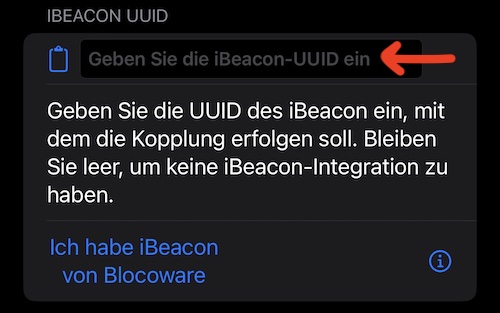 Verwenden Sie eine „Zwischenablage“-Schaltfläche links neben dem iBeacon-Textfeld, um die iBeacon-UUID einzufügen.