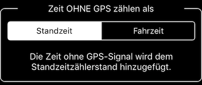 “Tunnel” und “Garagen” sind immer eine Herausforderung für alles GPS verwandte! Ist es richtig, Zeit in den Tunnel oder die Garage ohne GPS-Empfang in die Leerlauf- oder Bewegungszeit zu bringen? Es hängt davon ab, ob. Deshalb haben Sie eine Option in “Erweiterte Einstellungen”> “Nullgeschwindigkeit und kein GPS”, um die richtige Handhabung auszuwählen: