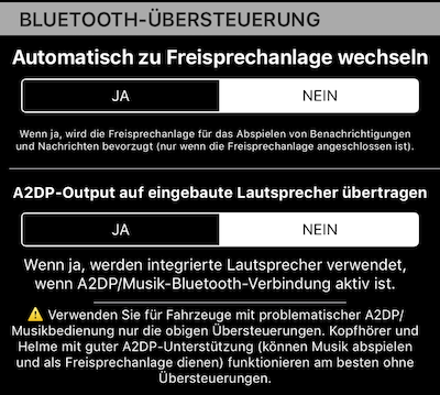 Wenn Musik vom iPhone über Ihr Bluetooth-Helm- / Headset- / Infotainment-System wiedergegeben wird, benötigen Sie normalerweise keine dieser Einstellungen.