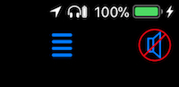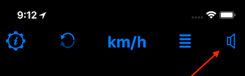 Bei Stummschaltung wird die Schaltfläche von einem roten Kreuzkreis überdeckt, der jedes Mal blinkt, wenn die App versucht, eine Warnmeldung / Sprachnachricht abzuspielen und die Tonausgabe für die App stummgeschaltet ist:
