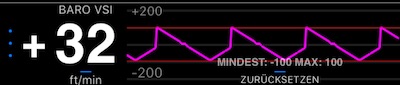 Option für das iPod-Panel. Ermöglicht die Messung der vertikalen Geschwindigkeit basierend auf einem eingebauten Barometer (in iPhone 6, iPad Air 2 und höher). In der Hochformat-Ansicht des iPhones wird eine Grafik angezeigt, die einen kleinen Überblick über die Werte bietet: