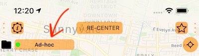 Hauptkarte für sich. Verschieben Sie eine Karte, um den Zentrierungsmodus zu verlassen (wenn sich die Karte auf Ihren Standort oder den Standort eines Teammitglieds konzentriert). Tippen Sie auf eine Schaltfläche oben links mit dem Namen der aktuellen Standardüberlagerung:
