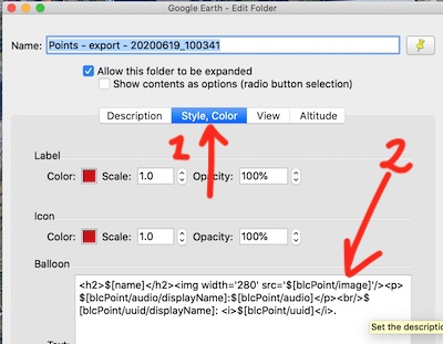 Change size and content of a photo balloon that shows when clicking on a point in Google Earth.