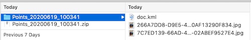 doc.kml file refers to images by unique identifiers and photo file names correspond to these uuids that you’ll find in the doc.kml file.