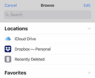 This gives access to all of the File providers that you have on your iPhone, iCloud, Dropbox, Box, Qnap, Synology, etc …