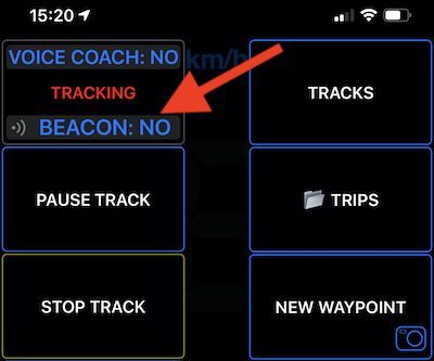 The idea for the GPS beacon is to enable leaving a breadcrumb for your loved ones, when needed. After you started the track, tap on a MENU and you’ll see beacon status and configuration button below the tracking indicator: