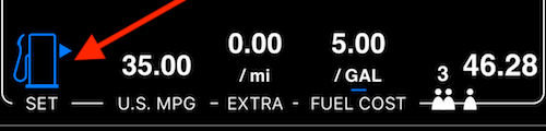 To activate, tap on a button fuel stand to edit fuel and cost settings: