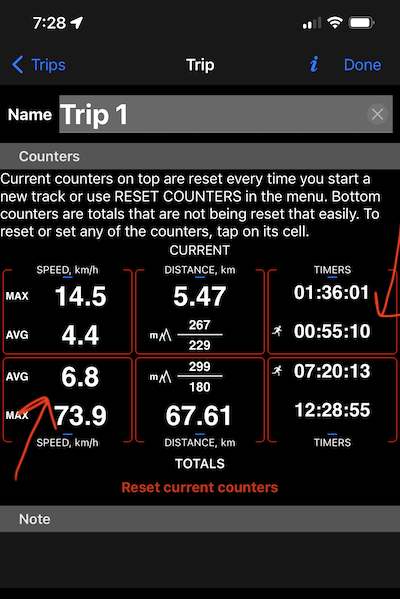 You can now review the current and total trip counters and by tapping on a specific counter cell you’ll get to a particular/total counter reset options: