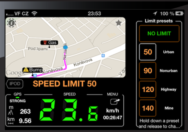 By default speedometer starts with showing speed as its main reading. To switch to the map, please just scroll through the bottom dashboards to the right or use scroll buttons:
