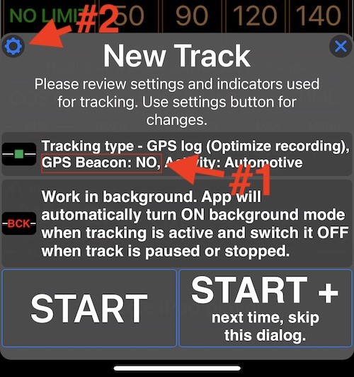 Not only GPS Beacon is an entirely optional function, the user is also provided a clear indication if they start GPS track with GPS Beacon enabled or not (GPS Beacon is disabled by default). In the NEW TRACK button:
