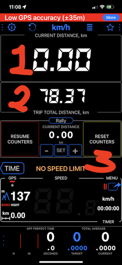 - When reaching a road book point B, C, D - RESET COUNTERS (#3). Current distance (#1) will reset to 0. Total distance (#2) will not be reset.