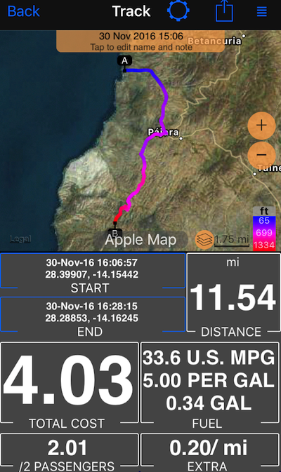 - Grid button top-right allows to either move the track to a different trip or pin it to the main map so you can retrace it.