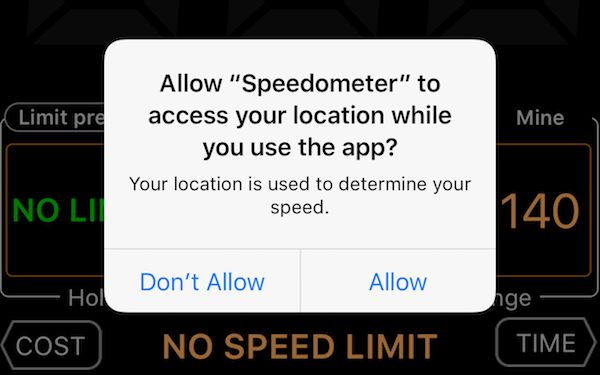 Upon the first application start you have to decide if speedometer will be able to use your location: