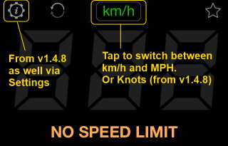 From version 1.4.8 you can also set the speed units by tapping on the settings button in the top left corner and invoking the settings window.