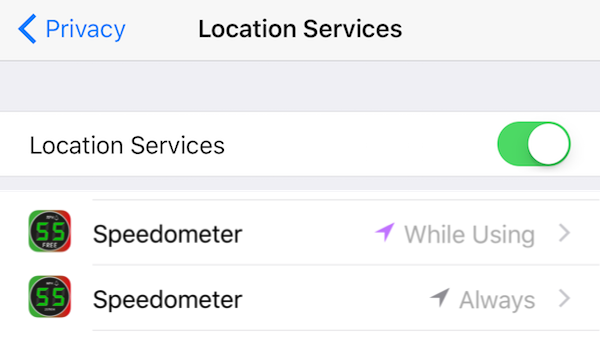 If you tapped on Allow, we can continue exploring the speedometer. If, by chance, you tapped on “Don’t allow”, this can be fixed by going into the Settings->Privacy->Location services (before iOS6: Settings->Location Services):