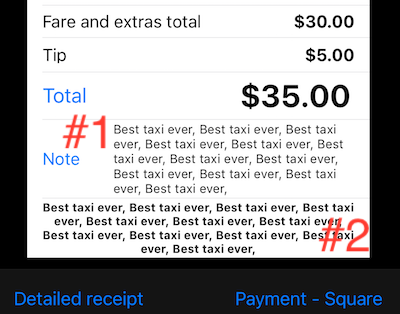 Previous version was sending Tip/Discount and taximeter’s receipt note, now you can pick what you want or nothing to be sent. Please beware that Square only shows few lines of text for this note when sending receipt out by email, even if whole note is kept by Square on a transaction record on a web.