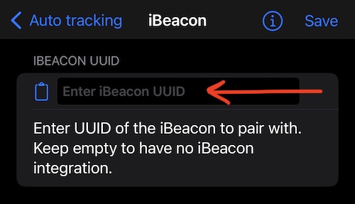 Use a “clipboard” button on the left of iBeacon text field to paste the iBeacon UUID.