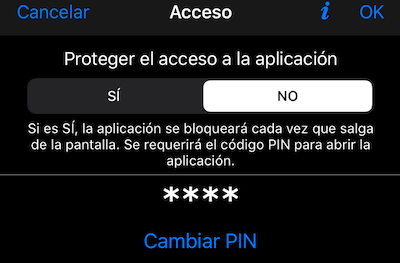 Desde la versión 1.7 , los usuarios de PRO tienen la opción de bloquear el acceso a la aplicación según un código PIN o biometría.