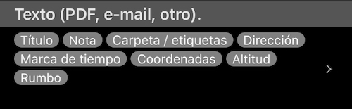 Toque en la fila con la lista de campos y elija qué campos de texto deben mostrarse en la parte superior de la imagen en un informe en PDF o correo electrónico: