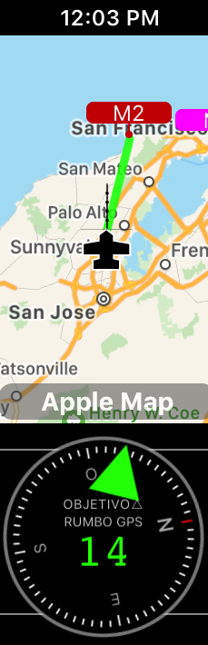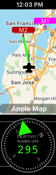 En el ejemplo anterior el recorrido requerido para el objetivo es 295 grados y estamos un poco fuera como la línea del curso en un mapa y la flecha verde nos dice. También observe cómo el “TARGET” anterior está mostrando “TARGET⇡” para darle una indirecta que esto es un “curso del buey”, no un diff.