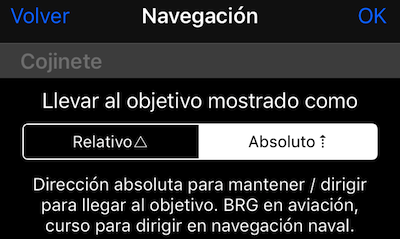 2. Absoluto. A menudo llamado BRG o curso a dirigir. Muestre el cojinete como un curso en el cual usted debe volar / conducir / caminar para llegar a un objetivo: