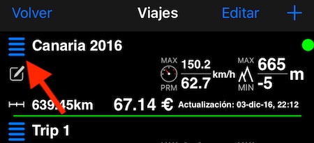 MENÚ > VIAJES y luego hay un botón de “lista” a la izquierda de cada fila de viaje:
