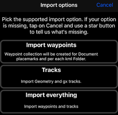 Importar waypoints y pistas desde archivos GPX desde la versión 1.5