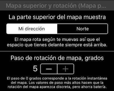 Parte superior del mapa que apunta hacia el norte o dirección del viaje