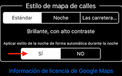 Nueva opción para aplicar estilo de mapa noche Google de forma automática durante la noche. Fue una pena tener información sobre la puesta del sol / salida del sol en la aplicación, pero no usarlo para forzar el interruptor de modo de mapa. Por defecto, la opción se deja a NO, por favor visite configuración del mapa de Google para cambiar su preferencia: