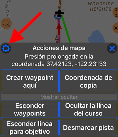 - Abrir configuraciones comunes del mapa (botón al que señala la flecha roja)