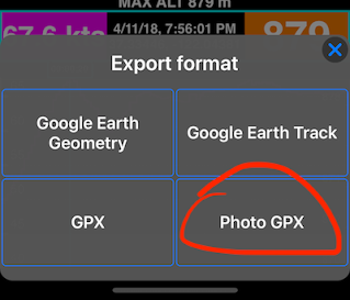 Opción de exportación de pista “Photo GPX”
