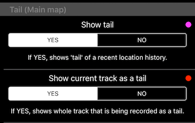 Incluso me tomé la libertad de configurar esto como ON por defecto. Si desea desactivar esta pista activa “cola”, abra la configuración de mapa común y encontrará nuevas opciones hasta la parte inferior: