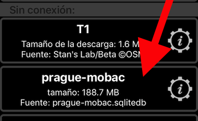 De vuelta en el mapa en vivo, la etiqueta con el nombre del mapa se ha convertido en un botón para mapa sin conexión para permitirle enfocar en la región del mapa descargada: