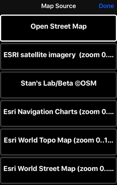 Elija una fuente para descargar el mapa desde (tocando en una fila Fuente):