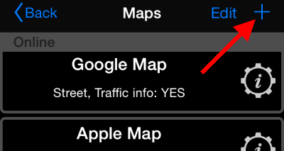 Para crear un mapa sin conexión, toque el signo “+” en “Configuración del mapa”: