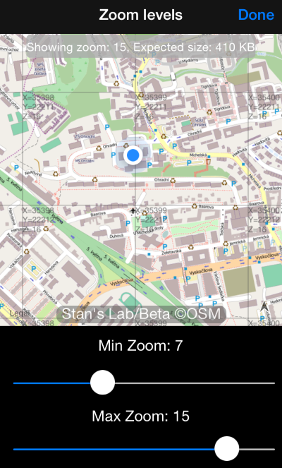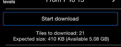 Toque una fila de “Niveles de zoom” para elegir los niveles de zoom que necesita descargar: